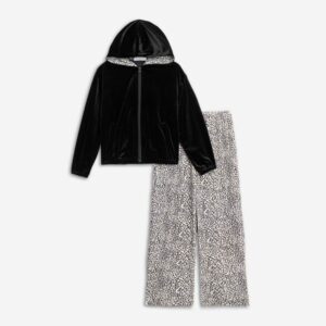 FUNKY – Σετ με βελουτέ ζακέτα με κουκούλα και παντελόνα λεοπάρ