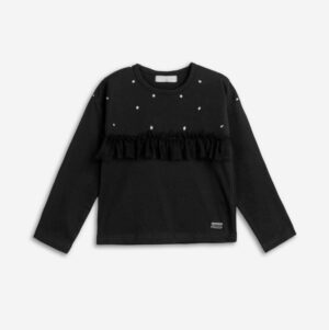 FUNKY – Μπλούζα μαύρη με βολάν και στρασάκια