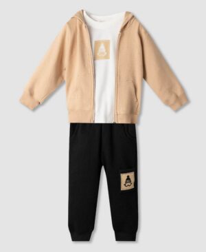 TRAX-Σετ 3 τεμαχίων με ζακέτα, βαμβακερή μπλούζα και φόρμα